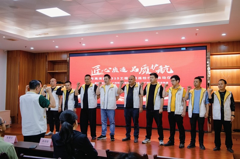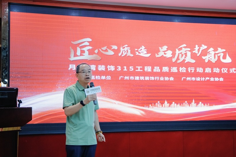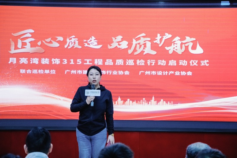 活動(dòng)伊始,廣州市建筑裝飾行業(yè)協(xié)會(huì)總工程師吳頌榮先生與廣州市設(shè)計(jì)產(chǎn)業(yè)協(xié)會(huì)副秘書(shū)長(zhǎng)高娜女士親臨現(xiàn)場(chǎng),在誓師大會(huì)上發(fā)表重要講話,由月亮灣裝飾副總經(jīng)理黃總帶領(lǐng)巡檢成員代表作宣誓儀式。