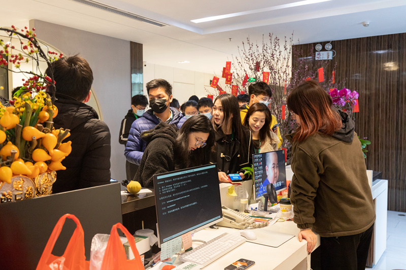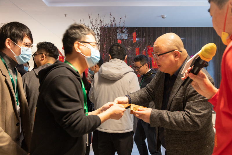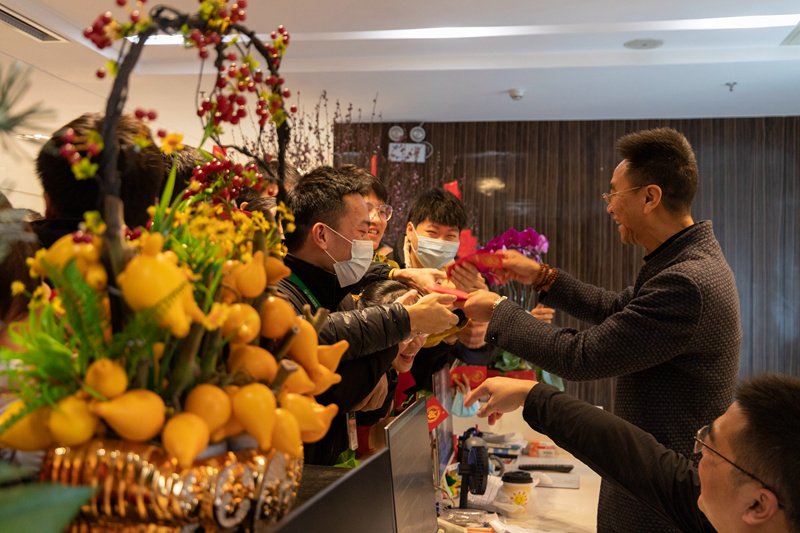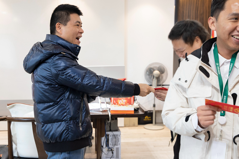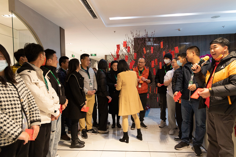 開工第一天,安全第一位,排隊(duì)打開粵康碼,做體溫登記。新年第一聚,由吳楚文總經(jīng)理主持,我們一起迎接新的一年,熱情滿滿的展開工作。李以寬副董新年首次跟大家問好,每個(gè)人的眼角眉梢都藏著快樂。隨后是大家期待的開門紅包,李董親手發(fā)給每一位同事。只聽得曾董事長(zhǎng)門口笑聲不斷,還有不重樣的祝福語(yǔ),原來大家排隊(duì)去曾炯新董事長(zhǎng)辦公室領(lǐng)紅包啦。月亮灣一眾中高管齊齊發(fā)紅包,今天大家拿著一堆紅包,拿到手軟。