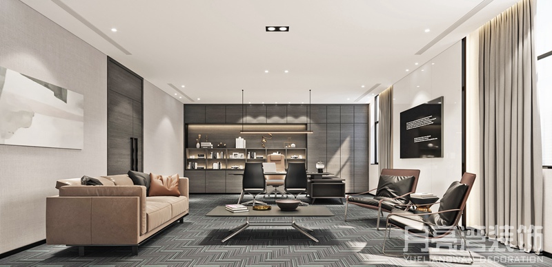 辦公室裝修效果(包括前廳、過道、辦公區(qū)、休閑區(qū)、會議室、老總室):