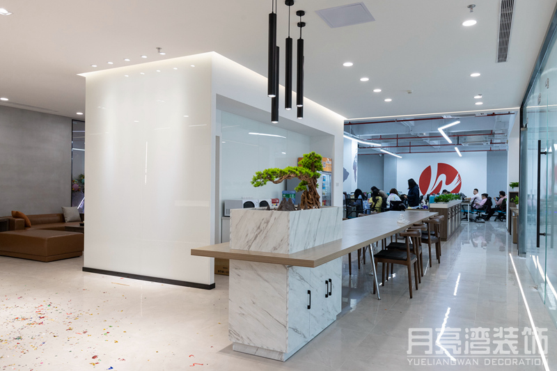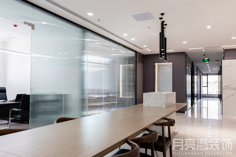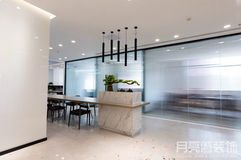 設(shè)計(jì)理念:赫翼國(guó)際發(fā)展迅速,日漸壯大,需要更大、更舒適的辦公環(huán)境,所以重新裝修辦公室,選新址,新地點(diǎn),新起點(diǎn)。月亮灣裝飾設(shè)計(jì)師深入了解客戶的需求后,圍繞“簡(jiǎn)約”和“高雅”,用光線與色彩層次,為客戶打造出現(xiàn)代年輕的新空間。
