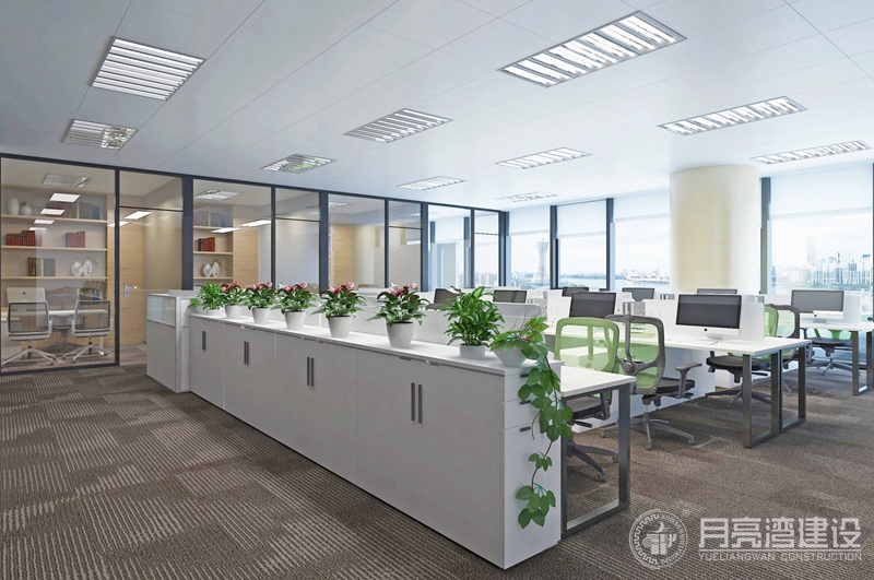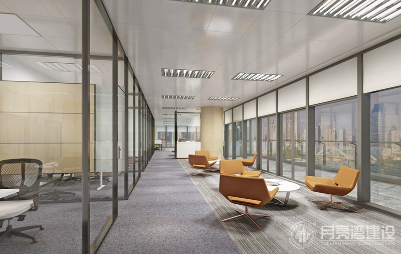 設(shè)計理念:通過設(shè)計語言,讓硬朗的空間線條打造出不同的景色,整個辦公室設(shè)計中,以線條最為有趣,單調(diào)的方格子被這種適度擠壓的空間處理方式,賦予了張力。